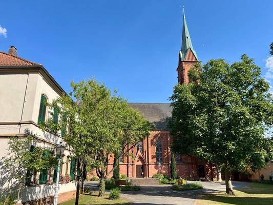 Wer durch Ladenburg spaziert merkt. Vieles hier ist geschichtlich sehr alt. Die Römer gründeten die Kleinstadt vor mehr als 2000 Jahren unter dem Stadtnamen „Lopodunum“. Bei einem Aufenthalt in der idyllischen Altstadt ist das historische Flair nicht nur zu sehen, sondern auch zu spüren. An vielen Stellen befinden sich Teile der alten Stadtmauer und dazu schöne Fachwerkhäuser und kleine Plätze. Am Rand der südöstlichen Altstadt, steht die Evangelische Stadtkirche (Kirchenstraße 28). Sie ist ein roter Backsteinbau, neugotischen Stils. Im Innenraum sorgen große Fenster und cremefarbene Wände für Helligkeit. Passend dazu sind schöne Holzemporen angebracht sowie Zeichnungen von Blumenornamenten an der Innendecke.