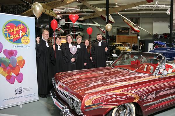 Wir segnen eure Liebe zwischen 11 und 17 Uhr an zwei Standorten im Museum: bei den American Dream Cars und beim Experimentalfahrzeug Brutus.
